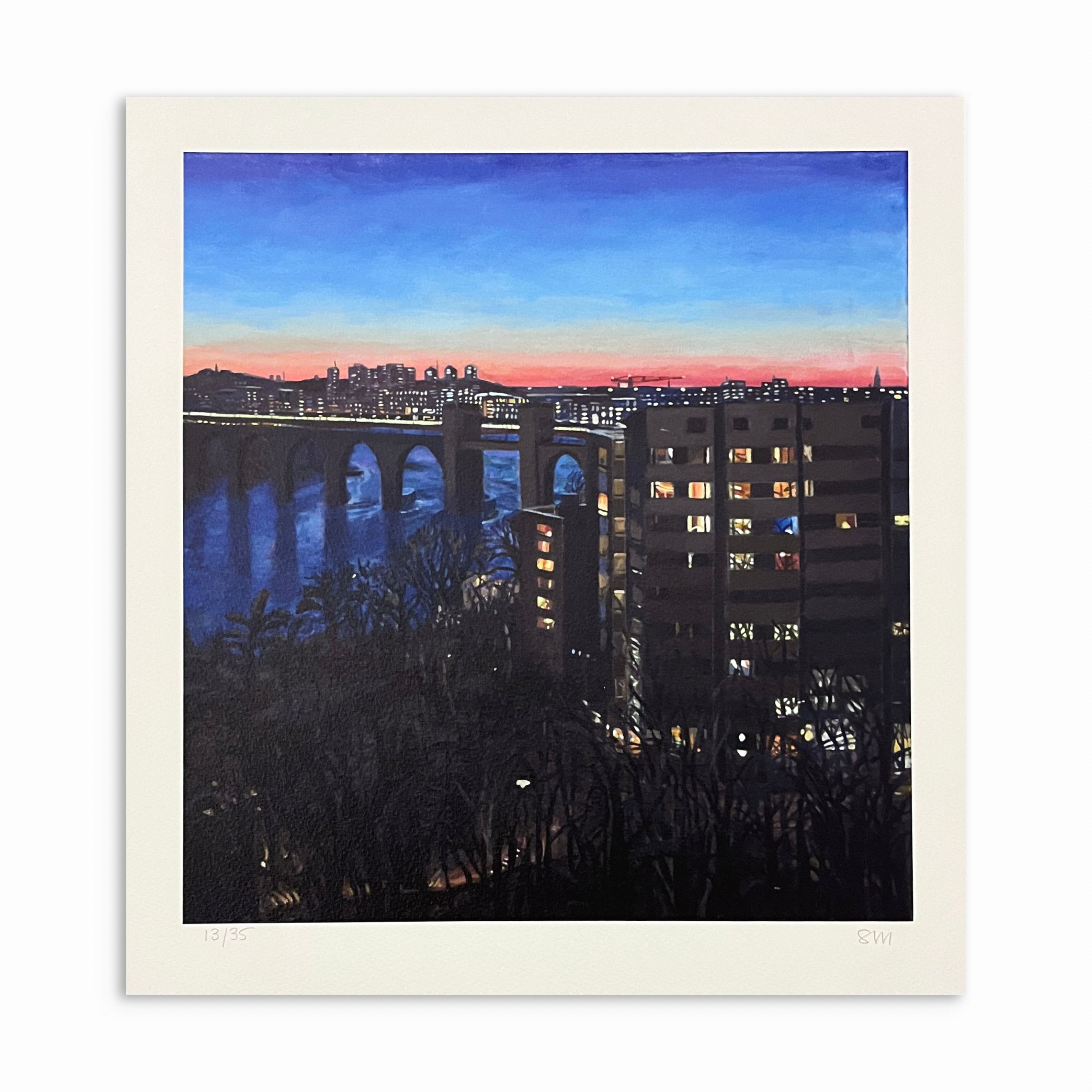 För en litografibild måste jag planera varje liten färgskiftning innan den trycks, för att långsamt och medvetet bygga upp en harmoni mellan alla färger - ofta ska bilden gå igenom tryckpressen tio till tolv gånger och ibland mer än så innan alla schatteringar och övergångar samspelar.'