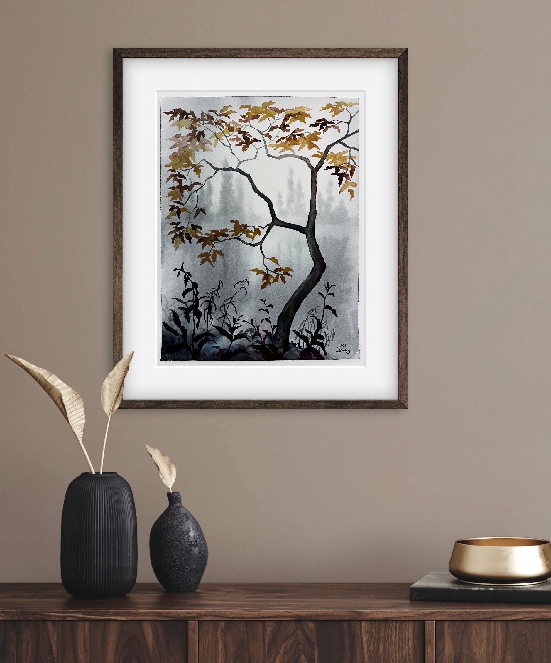 *Endast tillgänglig ramad i mörk valnötsfanér, vit passepartout och reflexfritt glas